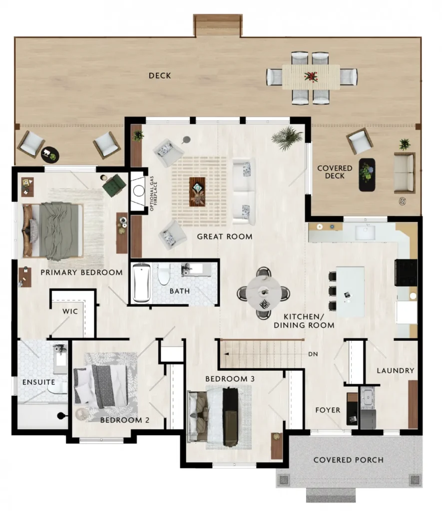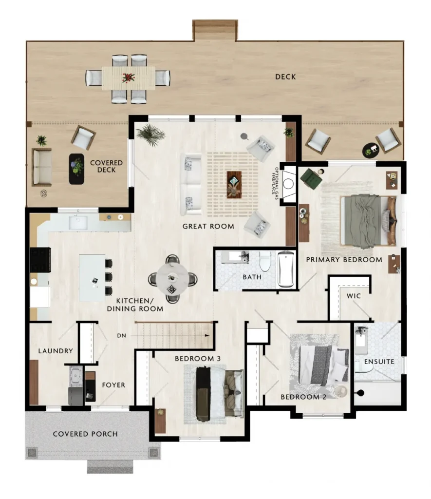 → Primary Bedroom: 13′-4″ x 14′-1″