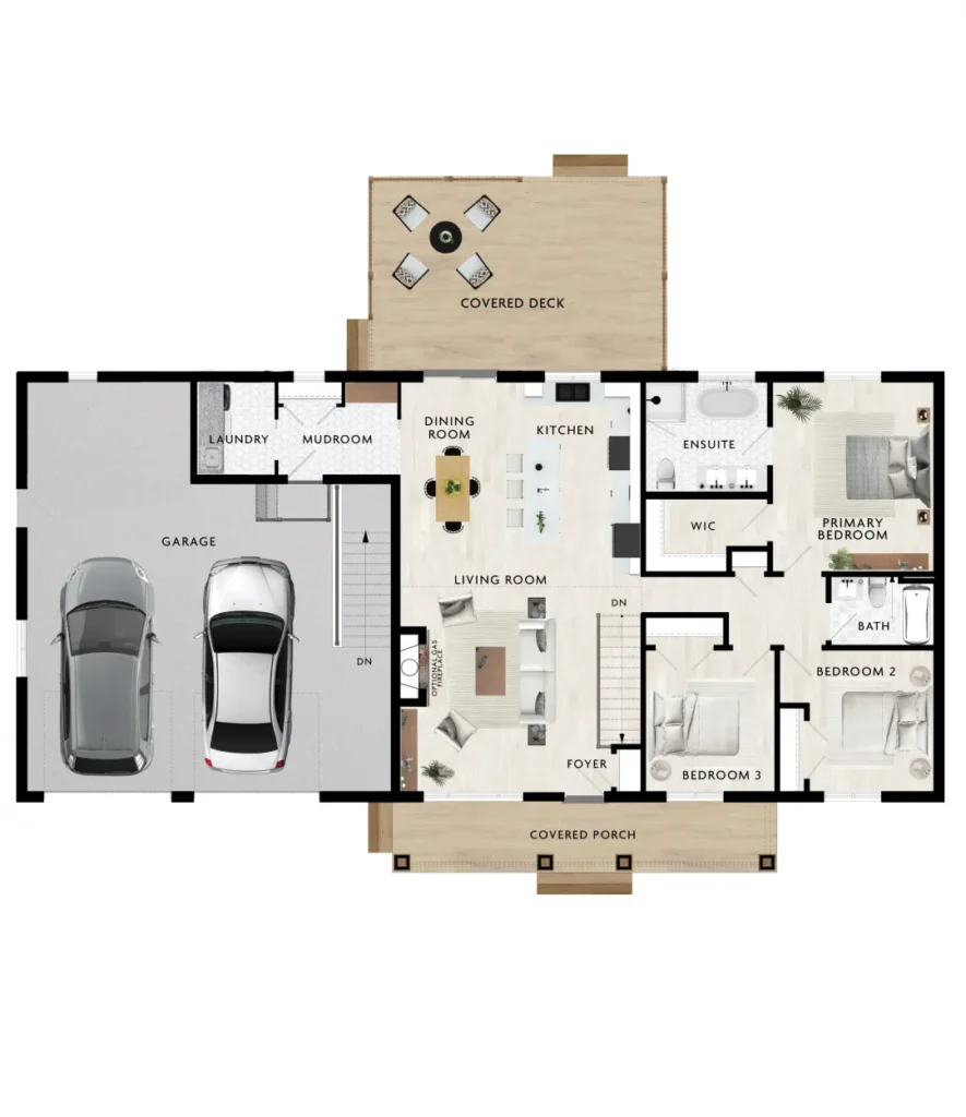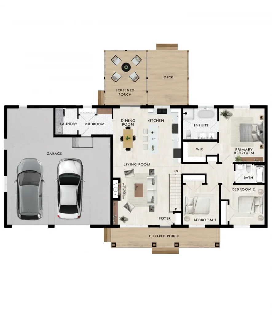 → Primary Bedroom: 13′-0″ x 15′-4″