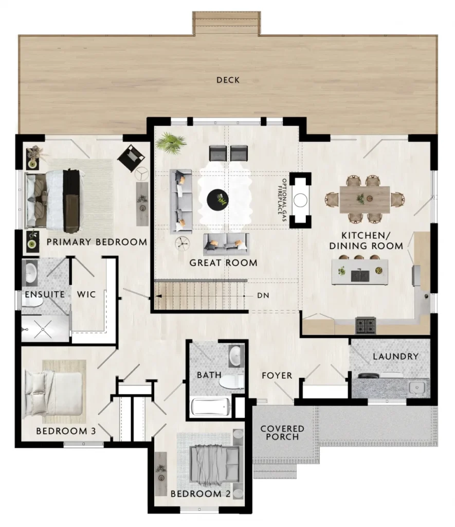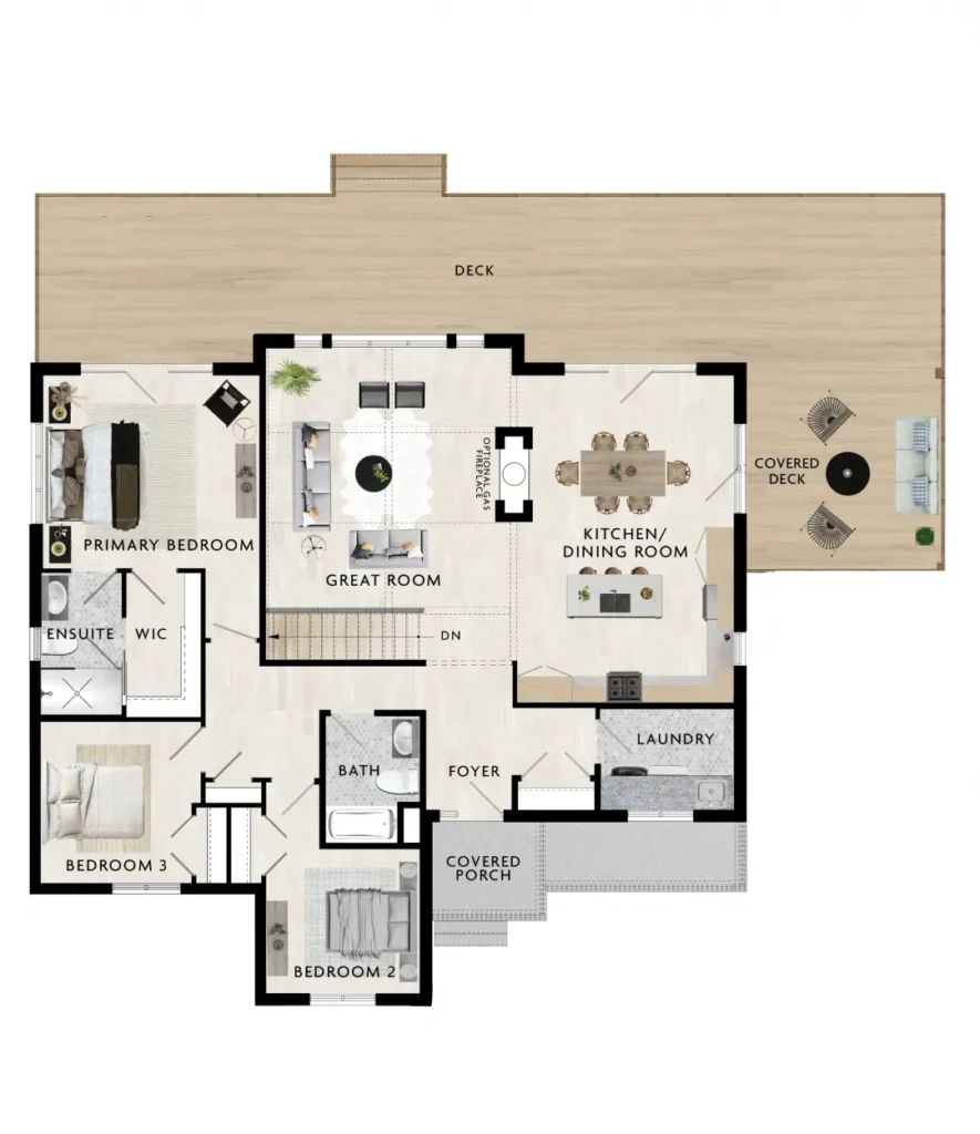 → Primary bedroom: 15′-0″ x 18′-4″